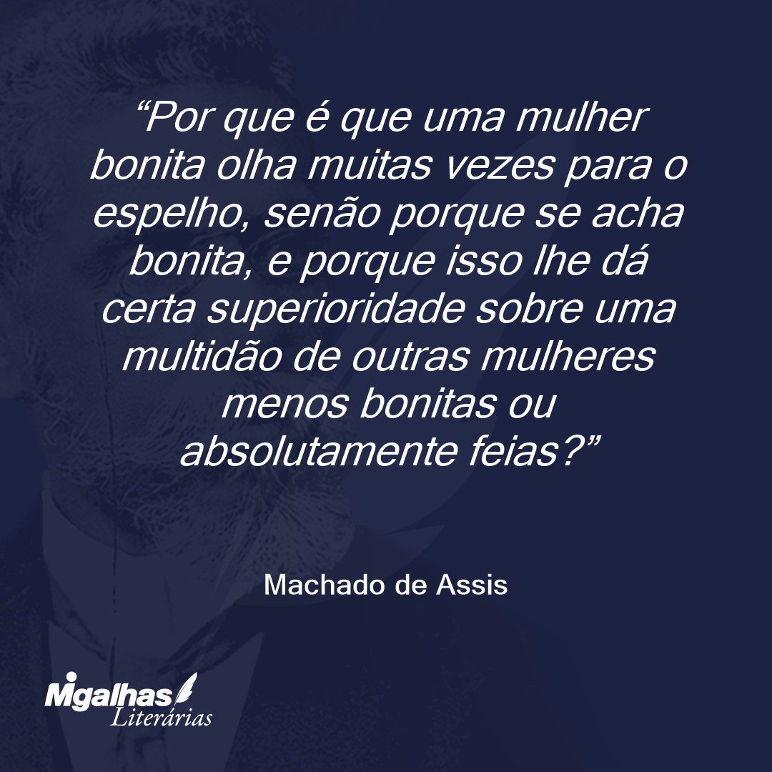 Por que é que uma mulher bonita olha muitas vezes para o espelho, senão porque se acha bonita, e porque isso lhe dá certa superioridade sobre uma multidão de outras mulheres menos bonitas ou absolutamente feias?