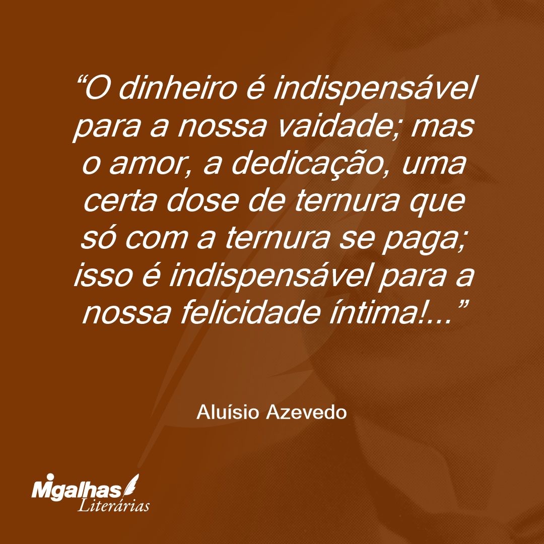 O dinheiro é indispensável para a nossa vaidade; mas o amor, a dedicação, uma certa dose de ternura que só com a ternura se paga; isso é indispensável para a nossa felicidade íntima!...