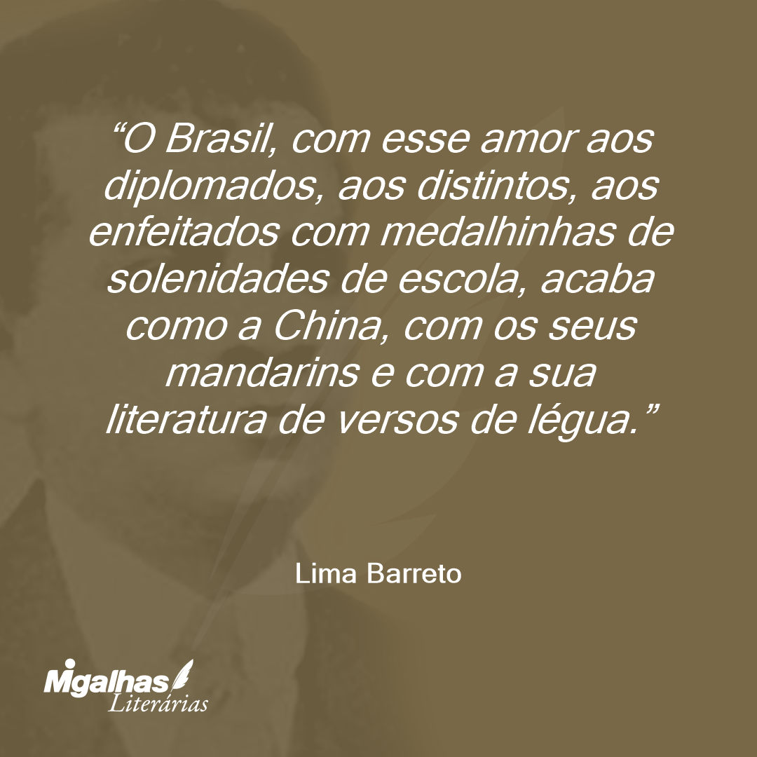 O Brasil, com esse amor aos diplomados, aos distintos, aos enfeitados com medalhinhas de solenidades de escola, acaba como a China, com os seus mandarins e com a sua literatura de versos de légua.
