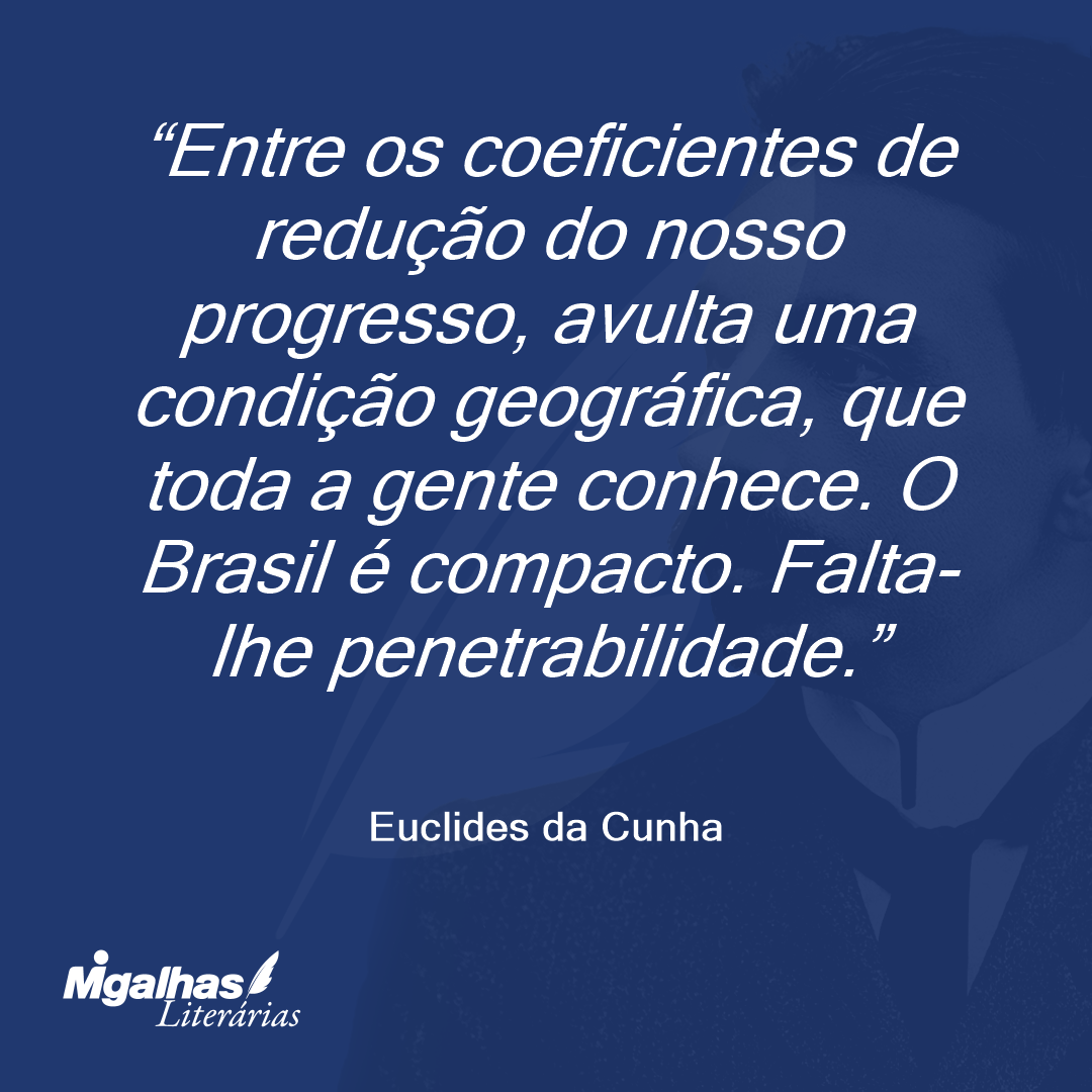 Entre os coeficientes de redução do nosso progresso, avulta uma condição geográfica, que toda a gente conhece. O Brasil é compacto. Falta-lhe penetrabilidade.