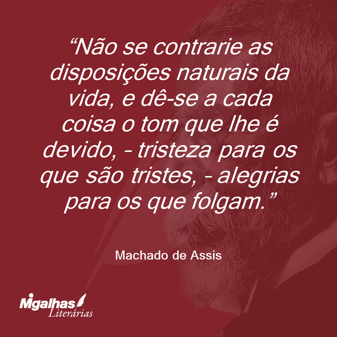 Não se contrarie as disposições naturais da vida, e dê-se a cada coisa o tom que lhe é devido, – tristeza para os que são tristes, – alegrias para os que folgam.