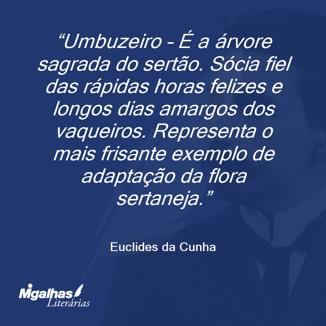 Umbuzeiro – É a árvore sagrada do sertão. Sócia fiel das rápidas horas felizes e longos dias amargos dos vaqueiros. Representa o mais frisante exemplo de adaptação da flora sertaneja.