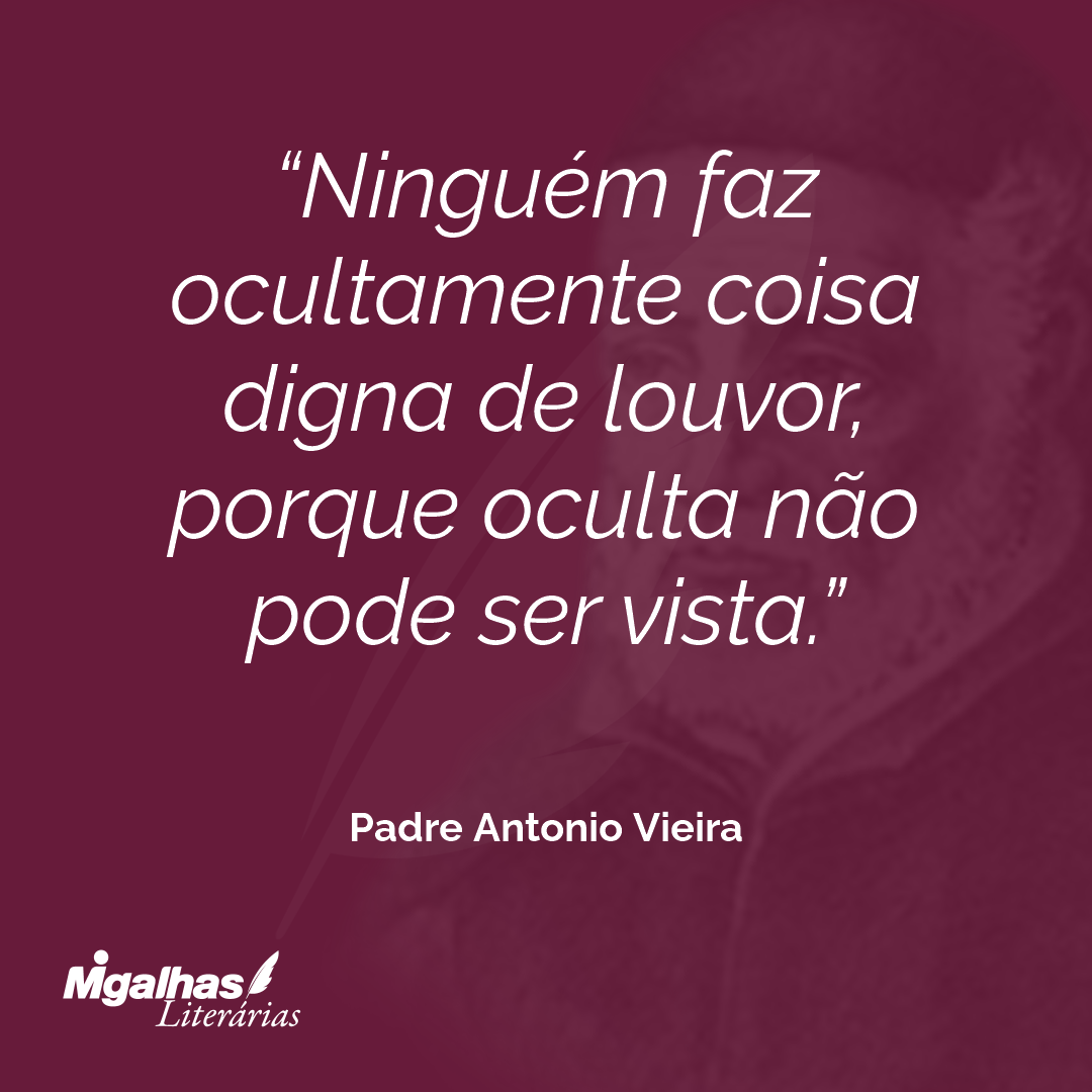 Ninguém faz ocultamente coisa digna de louvor, porque oculta não pode ser vista.