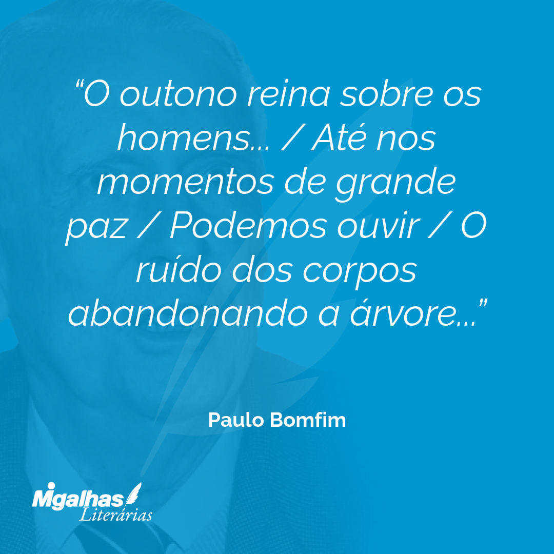 O outono reina sobre os homens... / Até nos momentos de grande paz / Podemos ouvir / O ruído dos corpos abandonando a árvore...