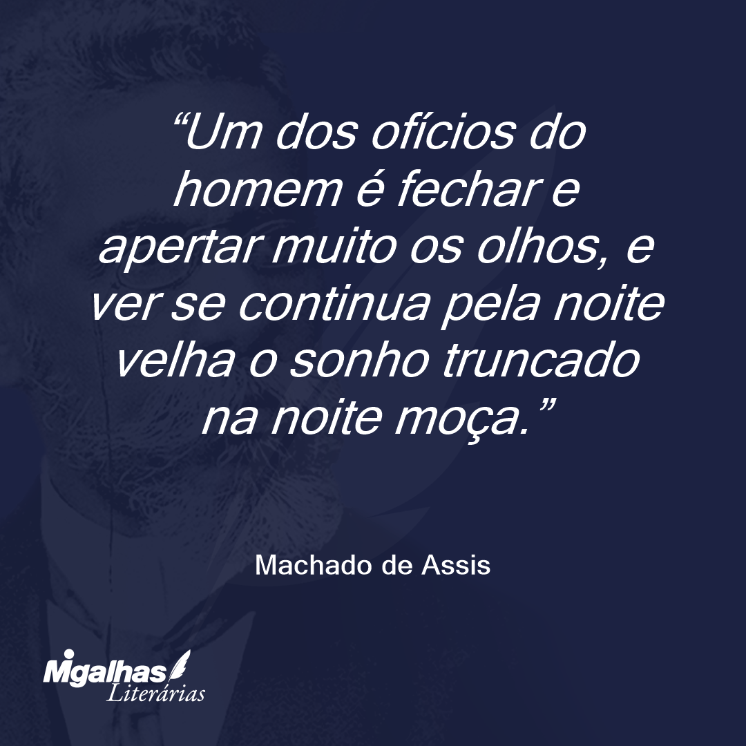 Um dos ofícios do homem é fechar e apertar muito os olhos, e ver se continua pela noite velha o sonho truncado na noite moça.