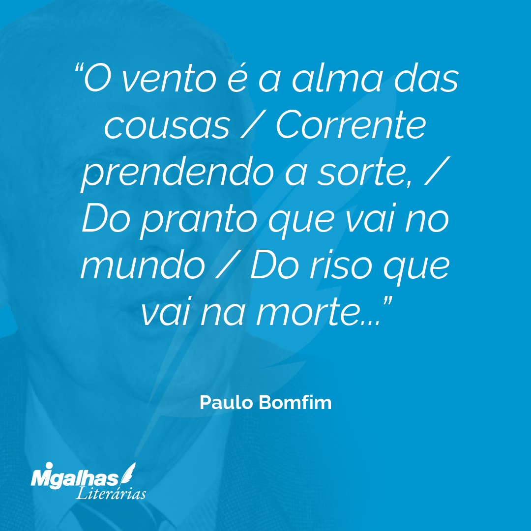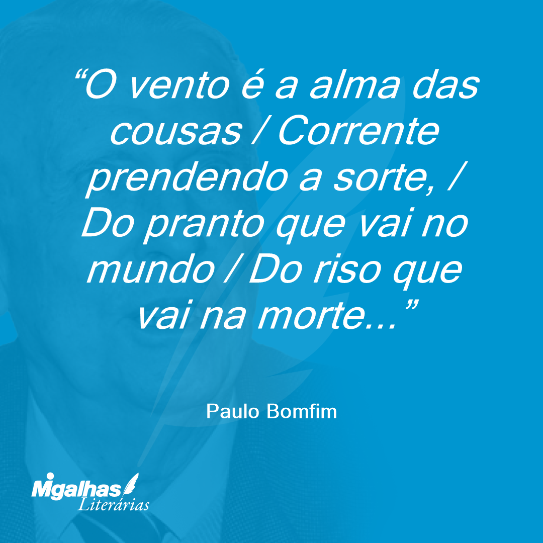 O vento é a alma das cousas / Corrente prendendo a sorte, / Do pranto que vai no mundo / Do riso que vai na morte...