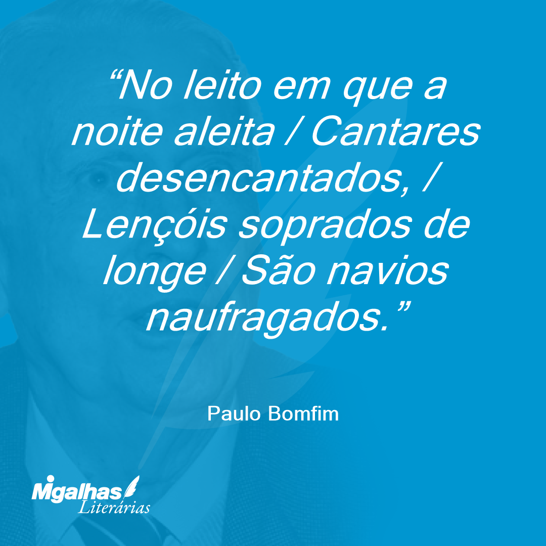 No leito em que a noite aleita / Cantares desencantados, / Lençóis soprados de longe / São navios naufragados.