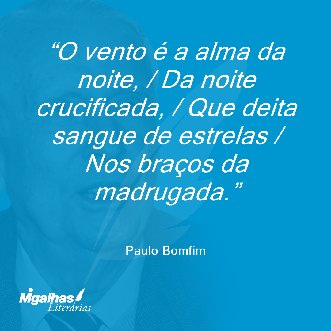 O vento é a alma da noite, / Da noite crucificada, / Que deita sangue de estrelas / Nos braços da madrugada.