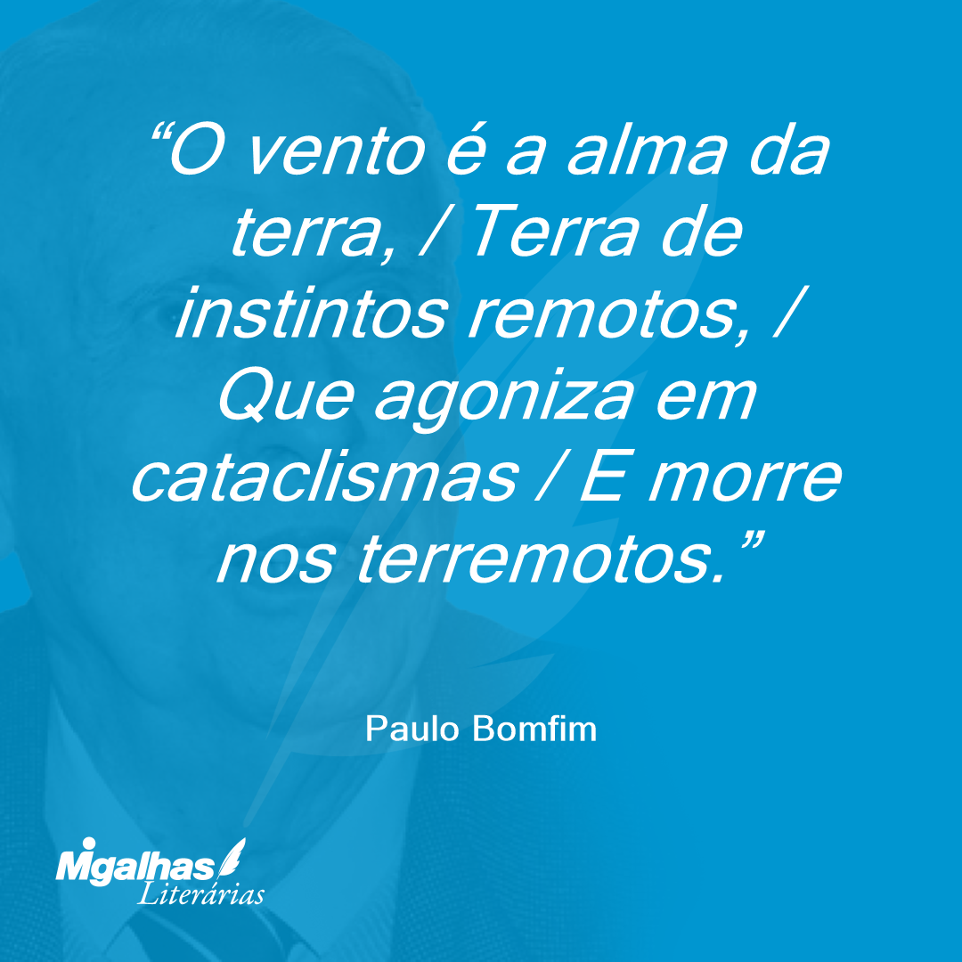 O vento é a alma da terra, / Terra de instintos remotos, / Que agoniza em cataclismas / E morre nos terremotos.