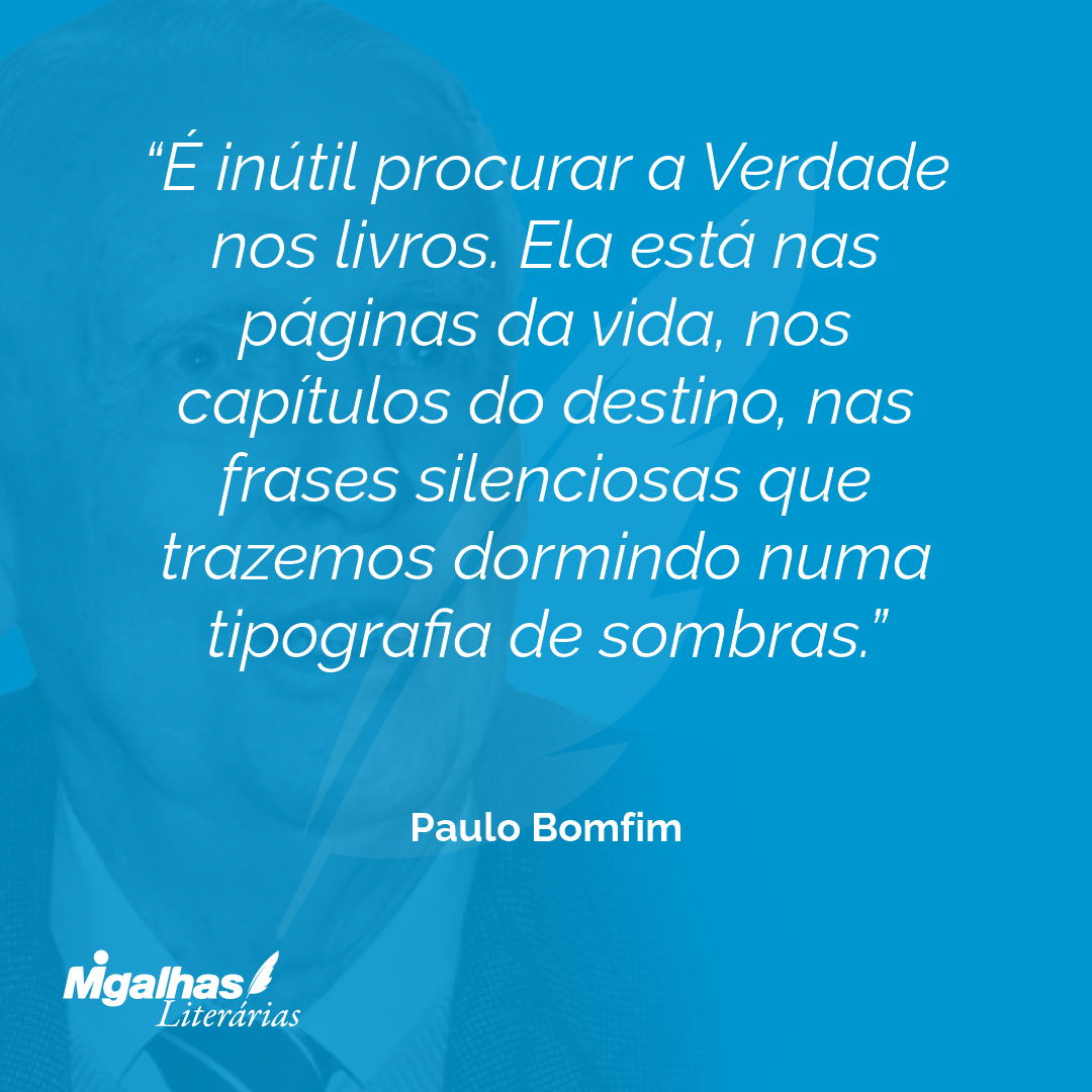 É inútil procurar a Verdade nos livros. Ela está nas páginas da vida, nos capítulos do destino, nas frases silenciosas que trazemos dormindo numa tipografia de sombras.