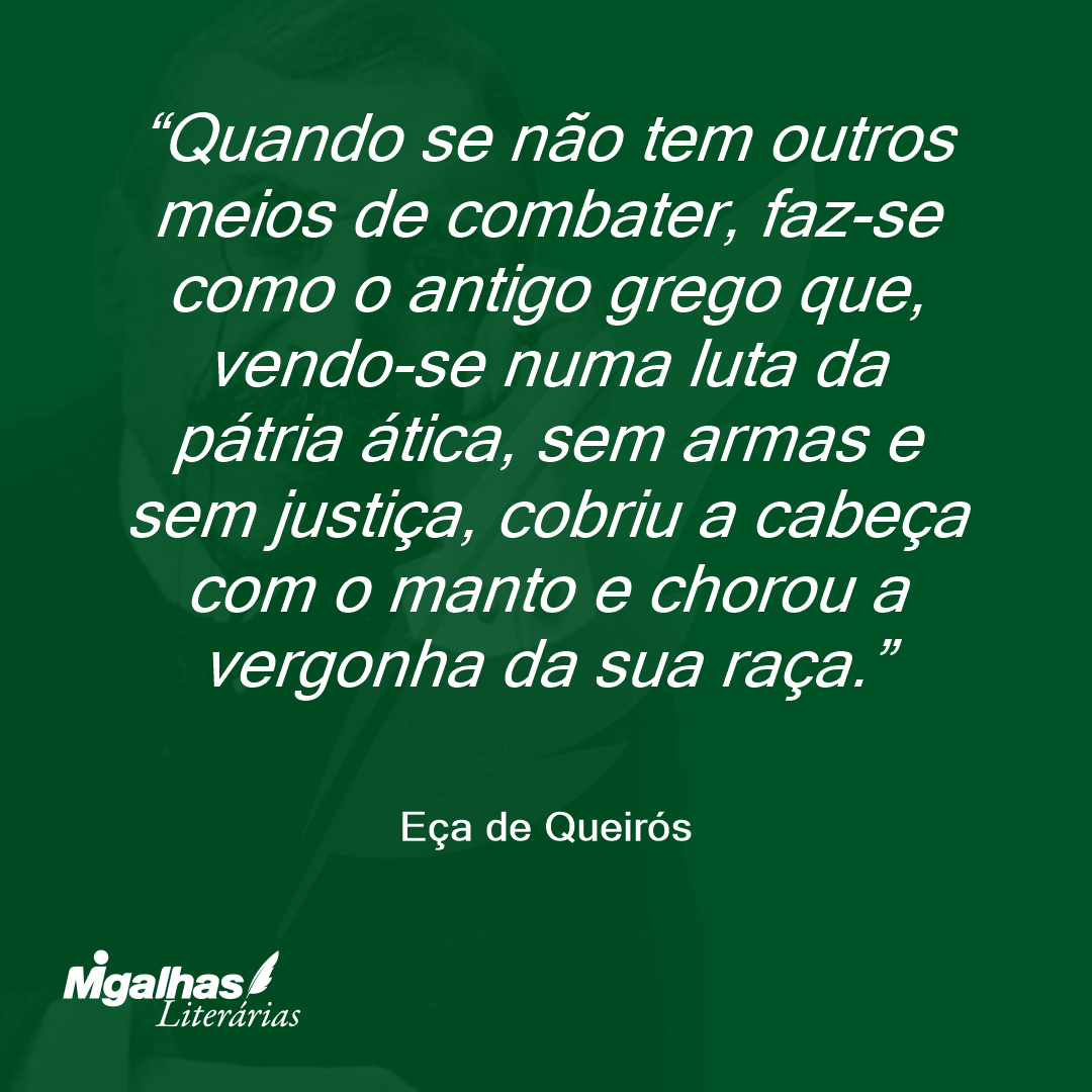 Quando se não tem outros meios de combater, faz-se como o antigo grego que, vendo-se numa luta da pátria ática, sem armas e sem justiça, cobriu a cabeça com o manto e chorou a vergonha da sua raça.