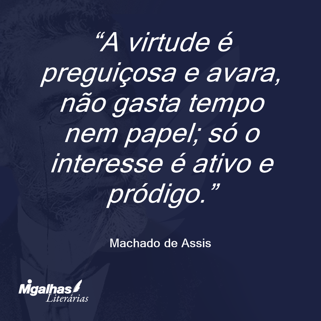 A virtude é preguiçosa e avara, não gasta tempo nem papel; só o interesse é ativo e pródigo.
