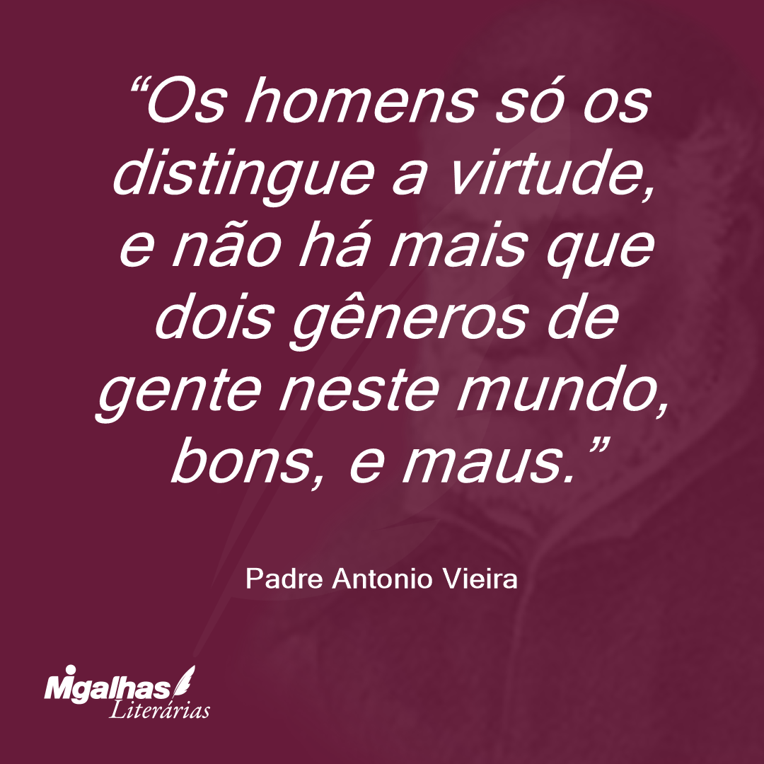 Os homens só os distingue a virtude, e não há mais que dois gêneros de gente neste mundo, bons, e maus.