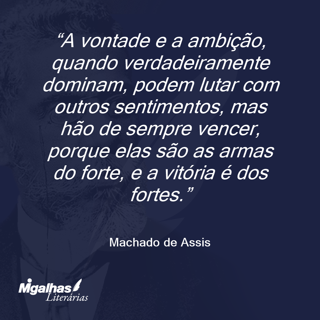 A vontade e a ambição, quando verdadeiramente dominam, podem lutar com outros sentimentos, mas hão de sempre vencer, porque elas são as armas do forte, e a vitória é dos fortes.