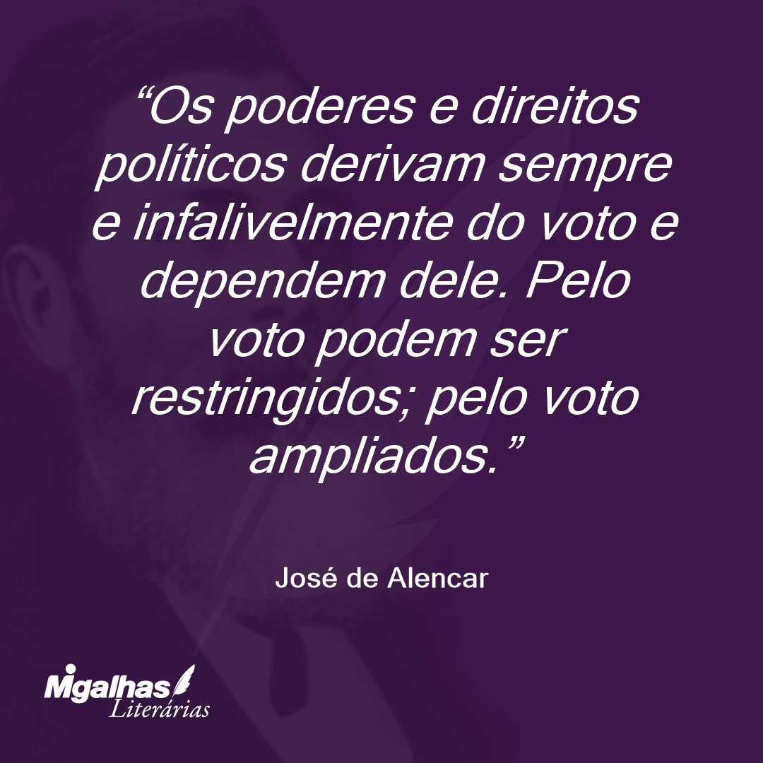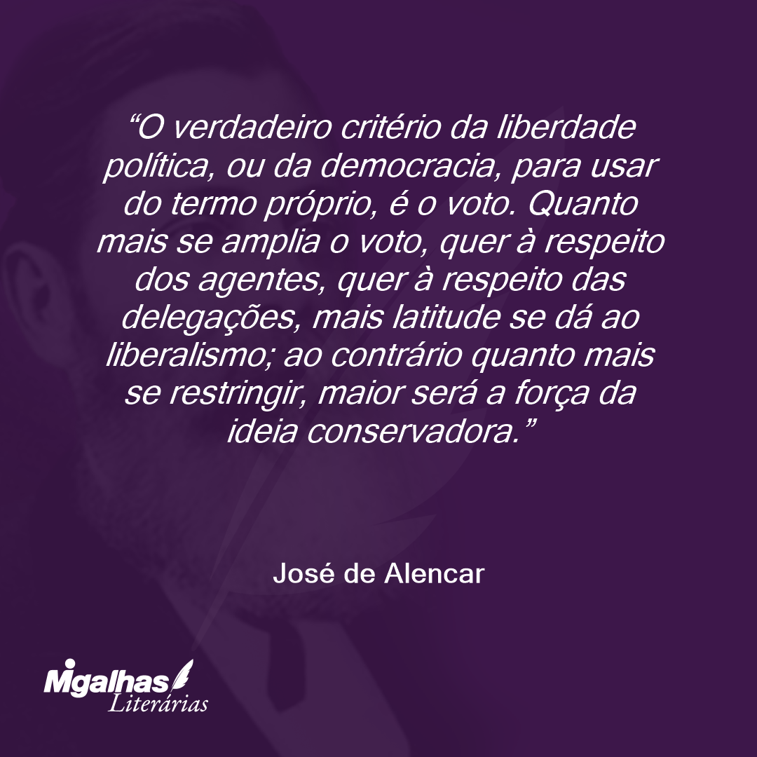 O verdadeiro critério da liberdade política, ou da democracia, para usar do termo próprio, é o voto. Quanto mais se amplia o voto, quer à respeito dos agentes, quer à respeito das delegações, mais latitude se dá ao liberalismo; ao contrário quanto mais se restringir, maior será a força da ideia conservadora.