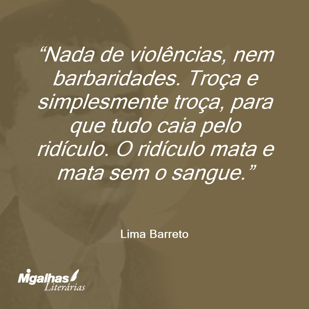 Nada de violências, nem barbaridades. Troça e simplesmente troça, para que tudo caia pelo ridículo. O ridículo mata e mata sem o sangue.