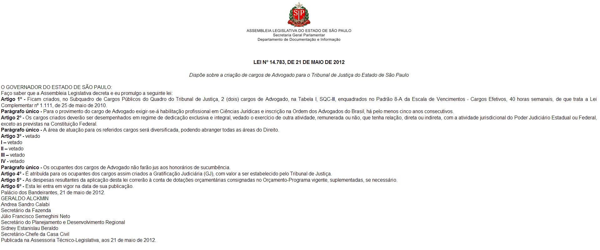 Segundo a Associação Nacional dos Procuradores do Estado, a lei 14.783/12, de SP, é incompatível com a CF, que atribui aos procuradores, admitidos mediante concurso, representação judicial e consultoria jurídica das unidades federadas.