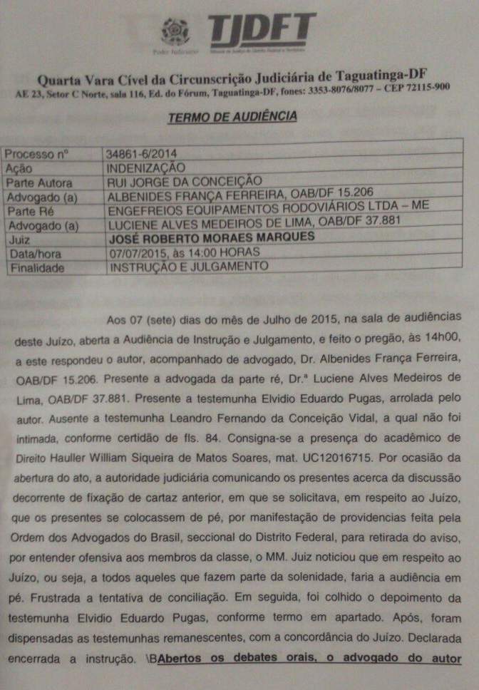 Na tarde desta terça-feira, 7, durante uma audiência, o juiz de Direito José Roberto Moraes Marques, da 4ª vara Cível de Taguatinga/DF, realizou procedimento atípico e tomou uma atitude inesperada.
