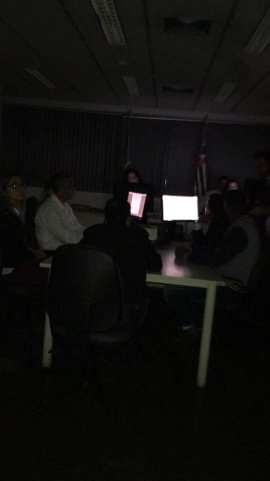Diante do fato, e sem luzes, não houve alternativa senão o adiamento dos feitos. E fez-se isso sem luzes, apenas com o monitor ligado e com lanternas de celulares.