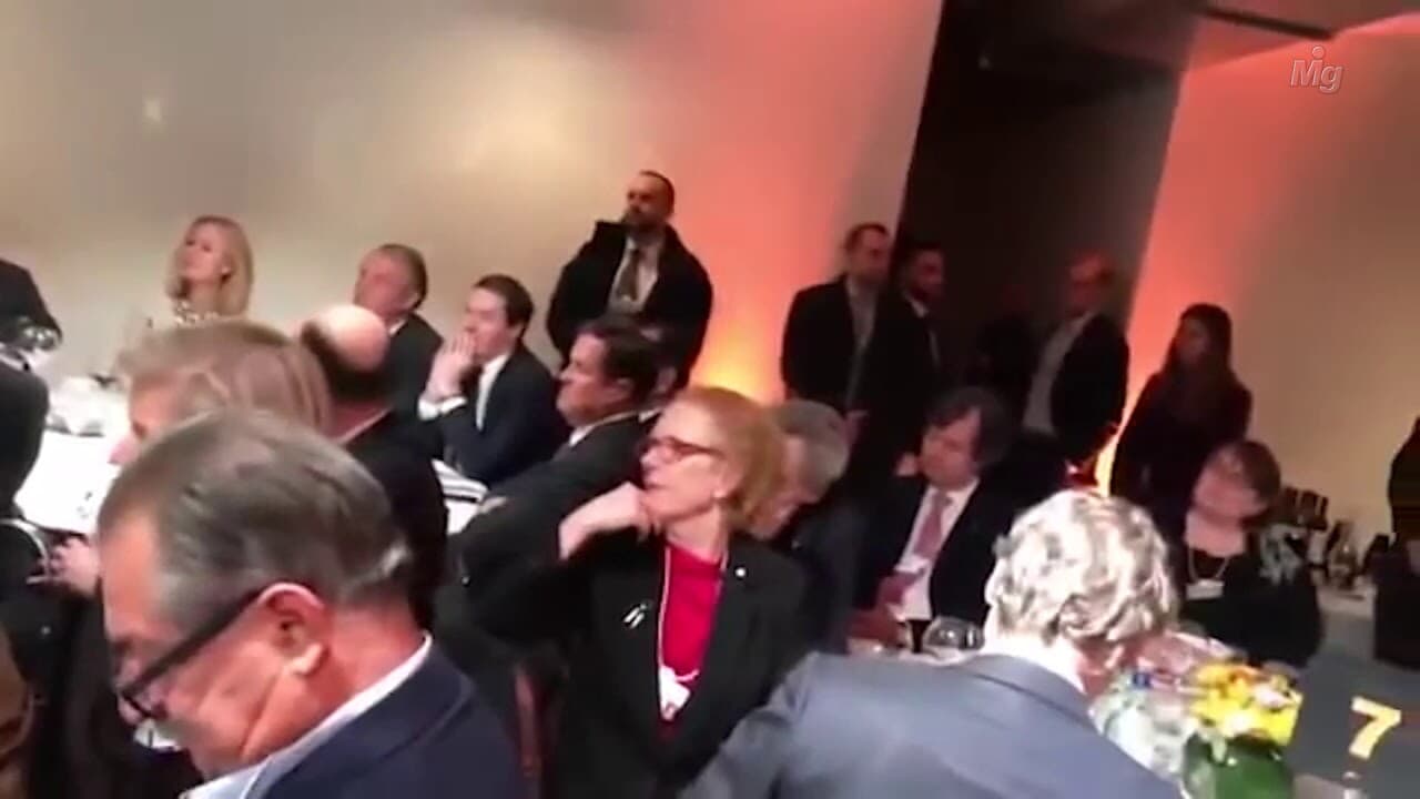 Bolsonaro arrancou risadas ao citar que havia, ali, 23 trilhões de dólares. "O Brasil só precisa de 10% disso." O presidente destacou que o país estava, há pouco, flertando com a esquerda, mas que a população decidiu que não quer mais o populismo, nem o comunismo.