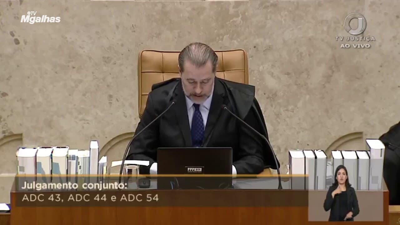O ministro Dias Toffoli iniciou seu voto lembrando que o que está em discussão é a validade de trecho do artigo 283 do Código de Processo Penal, que prevê que uma pessoa só pode ser presa após trânsito em julgado do processo, ou seja, quando não couber mais recurso.
