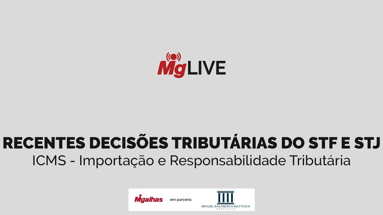 Para falar sobre esses e outros julgados, Migalhas e Brasil Salomão e Matthes Advocacia realizam o webinar “Recentes decisões tributárias do STF e STJ - ICMS - Importação e Responsabilidade Tributária”.