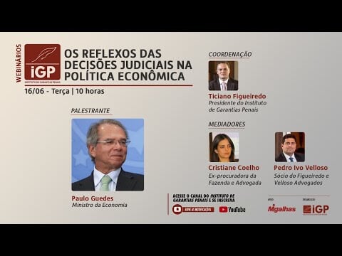 Na próxima terça-feira, dia 16/6, às 10h, o IGP - Instituto de Garantias Penais recebe em seu webinar o Ministro da Economia, Paulo Guedes. Ele irá falar sobre os impactos das decisões judiciais na política econômica.