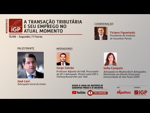 O IGP - Instituto de Garantias Penais realiza nesta segunda-feira, 15/6, o webinar "A transação tributária e seu emprego no atual momento", com a participação do Advogado Geral da União, José Levi.