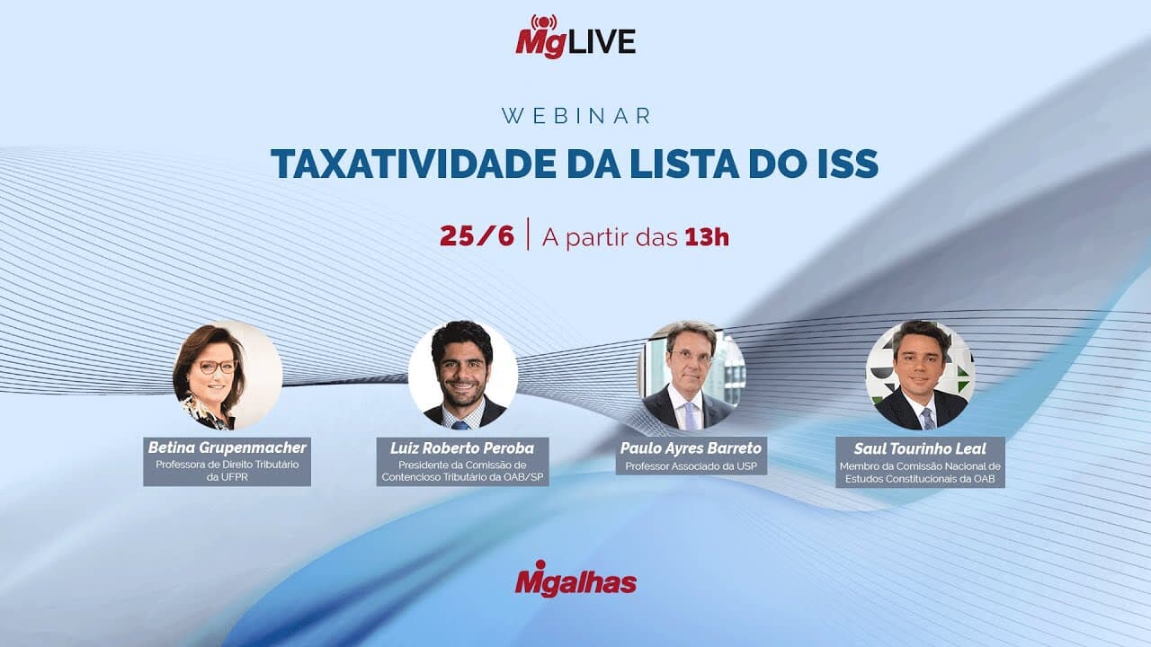 Para debater o assunto, Migalhas realiza, em parceria com o constitucionalista Saul Tourinho Leal, autor da coluna Conversa Constitucional, o evento virtual "Taxatividade da lista do ISS".