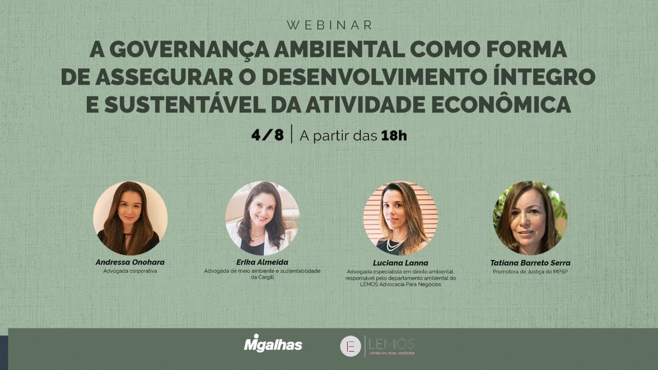 Para discutir "A governança ambiental como forma de assegurar o desenvolvimento íntegro e sustentável da atividade econômica" Migalhas realiza webinar em parceria com o escritório LEMOS Advocacia Para Negócios.