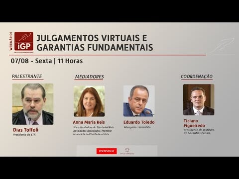 Com Dias Toffoli, IGP realiza webinar "Julgamentos virtuais e garantias fundamentais"