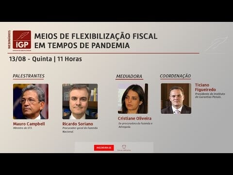 Ministro Mauro Campbell, do STJ, e o procurador-geral da Fazenda Nacional, Ricardo Soriano, são os convidados do webinário do IGP - Instituto de Garantias Penais de amanhã, 13/8, às 11h.