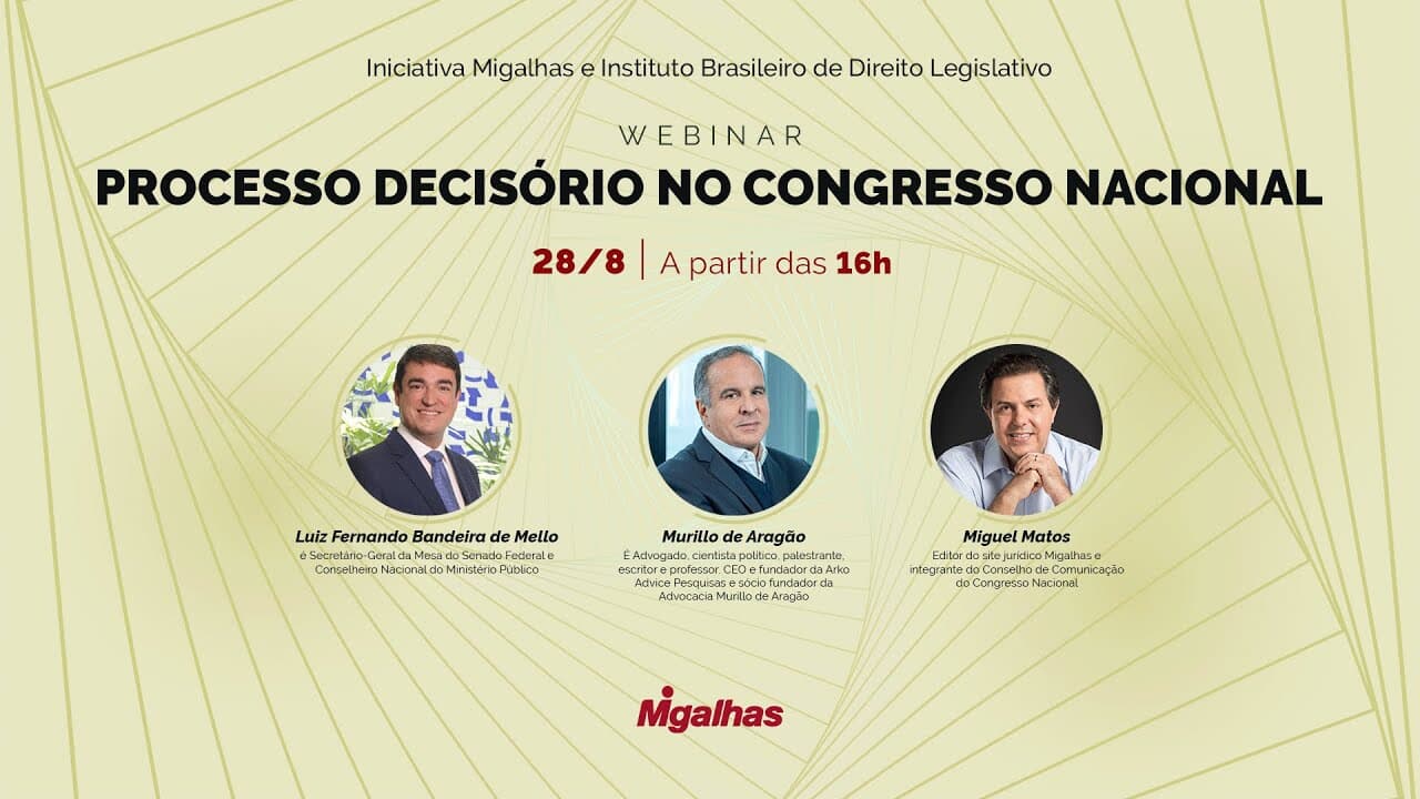 Para discutir o "Processo decisório no Congresso Nacional" Migalhas realiza webinar no dia 28/8, sexta-feira, às 16h.