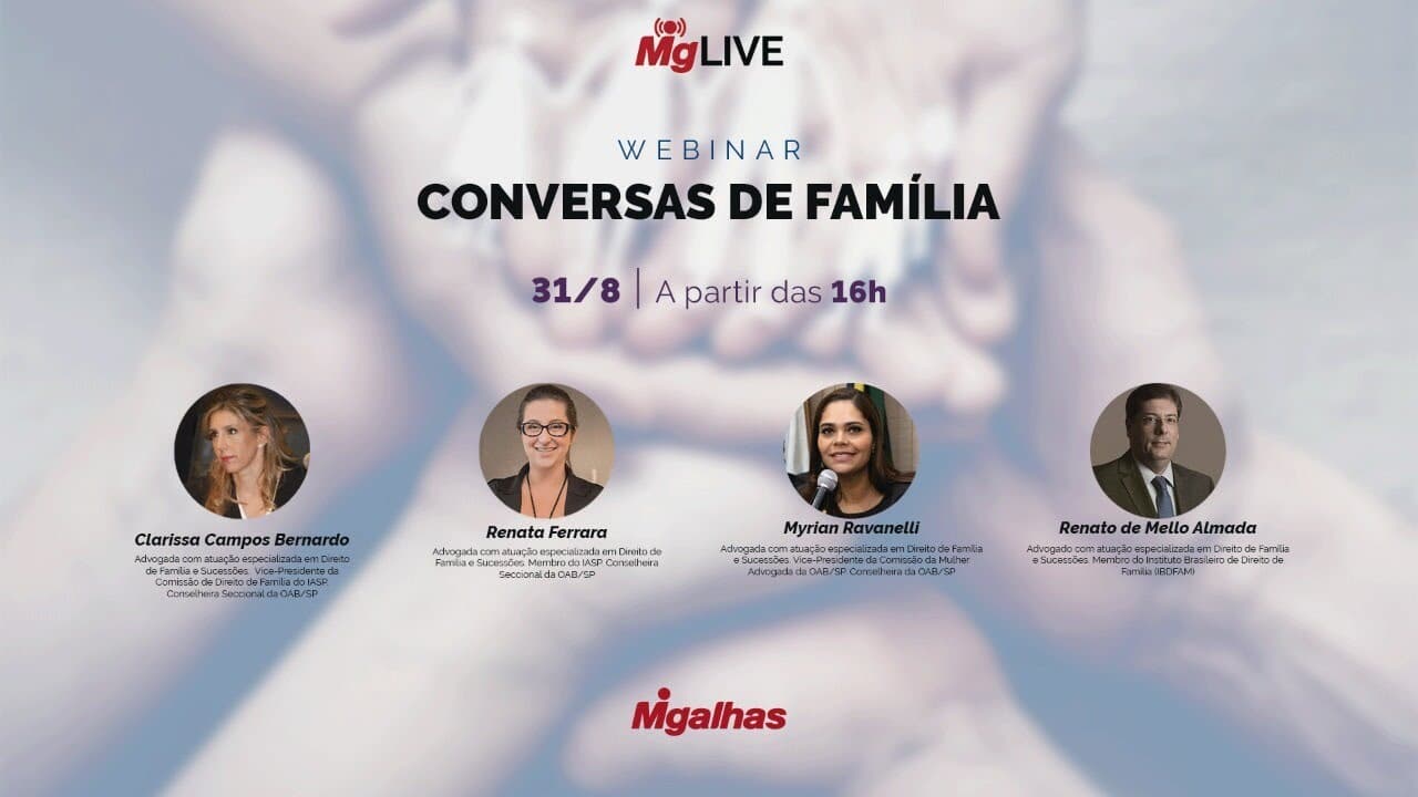 Neste webinar receberemos especialistas em Direito de Família para um bate-papo atual de temas que estão na ordem do dia: guarda e convivência, violência doméstica , alienação parental, participação dos pais na educação e dia-a-dia dos filhos e união estável em tempos de pandemia.
