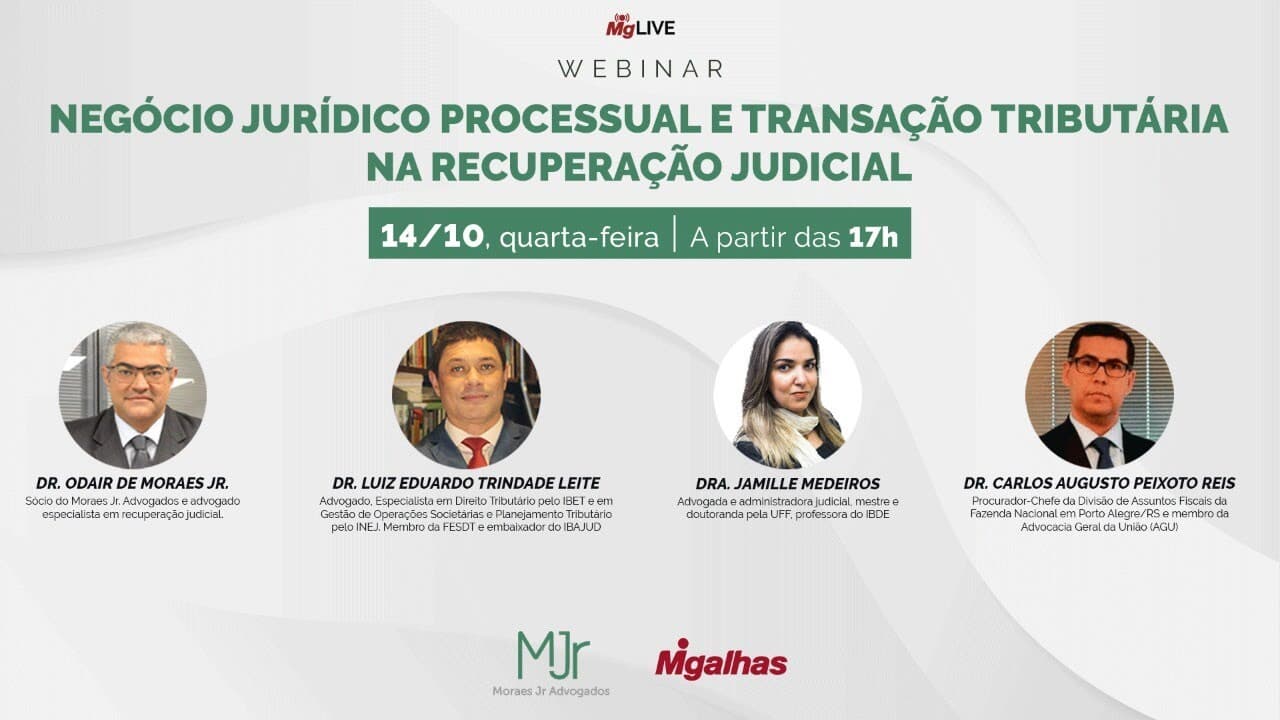 O uso da Recuperação Judicial na transação tributária e geração de negócios jurídicos processuais foi tema do webinar realizado pelo Migalhas em parceria com o escritório Moraes Jr. Advogados.