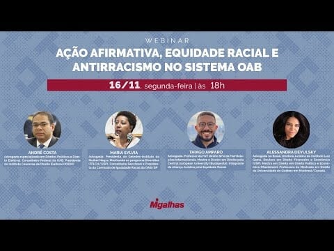 No último dia 16, o conselheiro Federal da OAB André Costa participou de webinar "Ação Afirmativa, Equidade Racial e Antirracismo no Sistema OAB", realizado por Migalhas, para discutir a reserva de 30% de vagas para negros em cargos na OAB.
