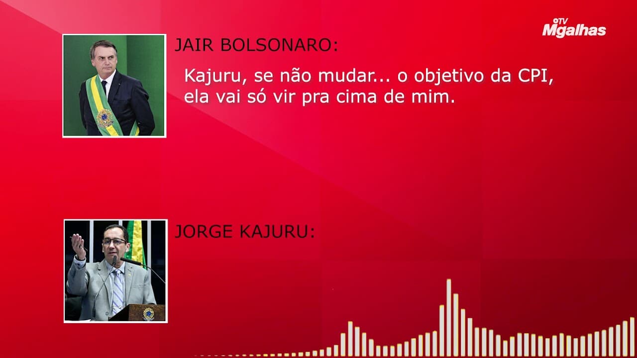 Em áudio divulgado neste domingo, 11, o presidente Jair Bolsonaro pressiona o senador Jorge Kajuru a peticionar no Supremo Tribunal Federal para colocar em pauta os pedidos de impeachment contra ministros da Corte. Além disso, na mesma conversa, Bolsonaro pediu que a "CPI da pandemia" investigue também governadores e prefeitos.