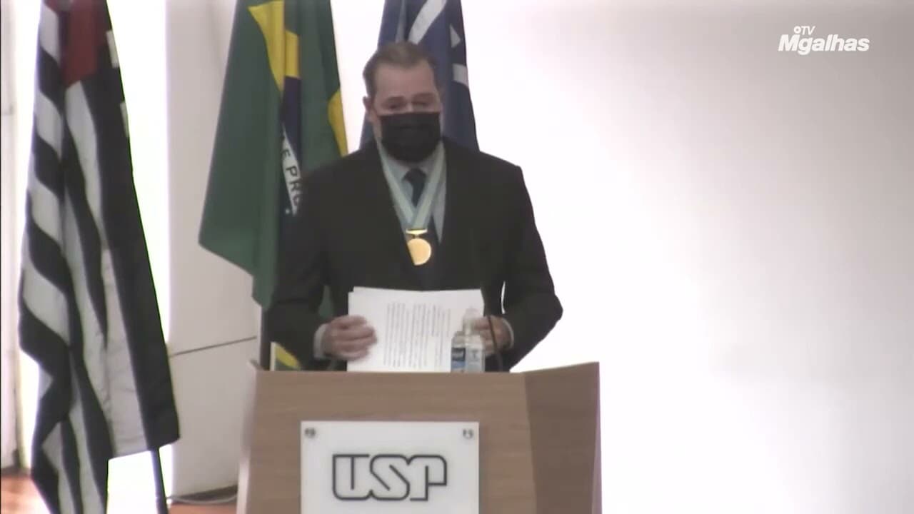 Ao receber a honraria, o ministro se emocionou e registrou seu orgulho e alegria em receber a homenagem, “que muito me sensibiliza, por partir da USP, minha querida alma mater”. Ele destacou a importância da Universidade para os debates sobre a vida brasileira. Leia trecho: