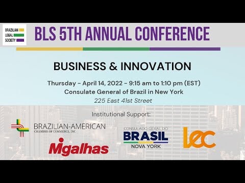 A Brazilian Legal Society da New York University School of Law - BLS realiza, dia 14/4, no consulado brasileiro, em Nova Iorque, o evento híbrido "Business & Innovation", com a apresentação de três painéis que discutirão temas atuais à comunidade jurídica.