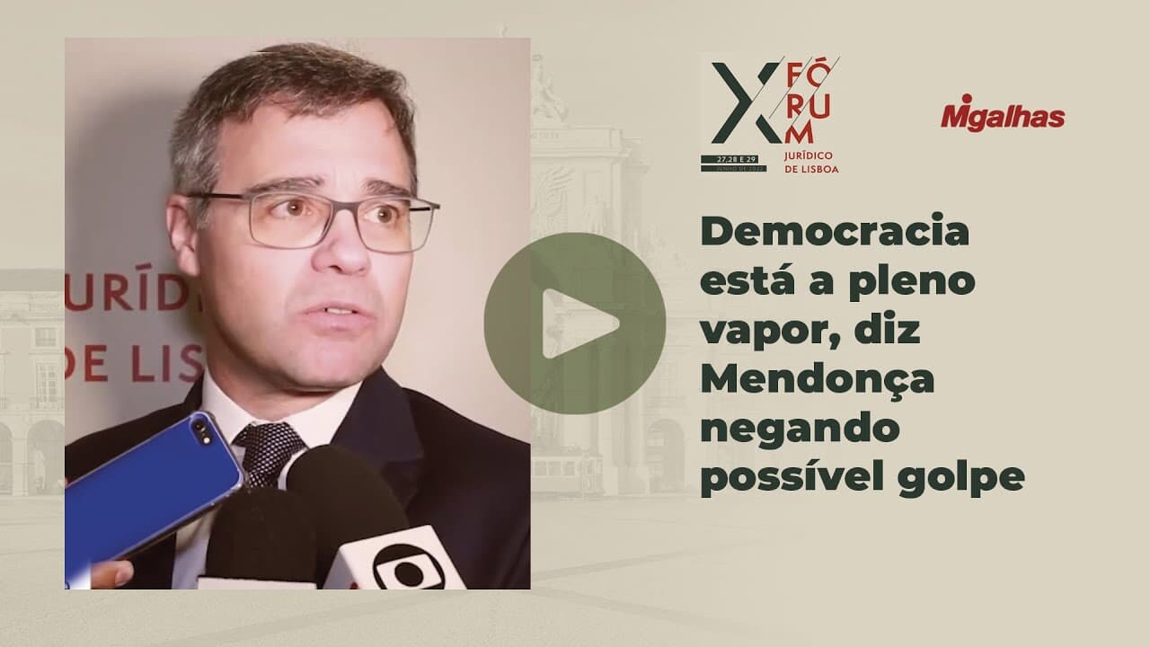 O ministro André Mendonça, do STF, disse em entrevista à TV Migalhas durante o X Fórum Jurídico de Lisboa, que "a democracia está a pleno vapor e as tensões são próprias de um regime democrático". Afirmou, ainda, que a opinião, principalmente questões políticas, trazem, naturalmente, algum tipo de debate mais acalorado.