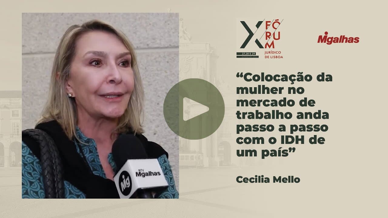 Em entrevista à TV Migalhas, durante X Fórum Jurídico de Lisboa, a advogada Cecilia Mello analisou como a colocação da mulher no mercado de trabalho impacta diretamente no índice econômico de um país.