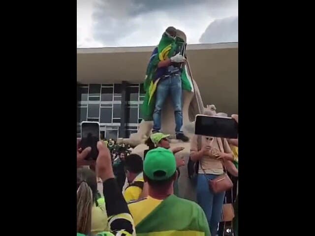 Em vídeo que circula nas redes sociais, um bolsonarista aparece com a cópia da CF roubada durante a invasão.