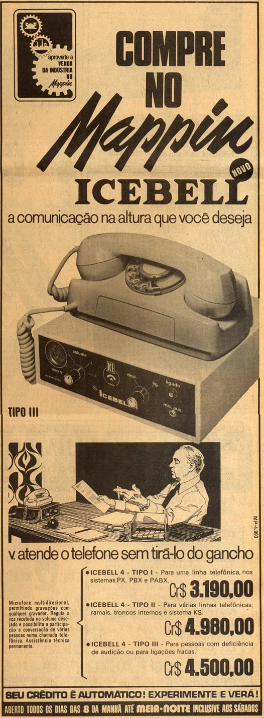 Um impensável aparelho no qual "v. atende o telefone sem tirá-lo do gancho".