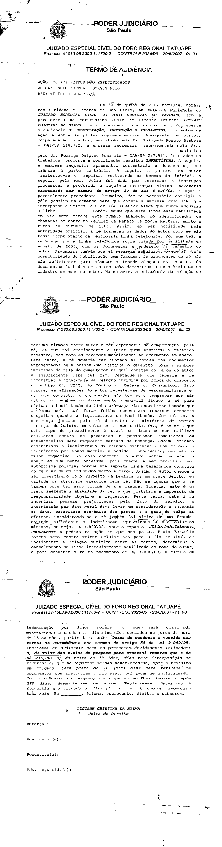 O advogado e migalheiro Raimundo Renato Barbosa obteve sentença favorável contra a Vivo, que ainda cabe recurso, que a condenou ao cancelamento de uma linha de telefone habilitada sem a anuência de seu cliente, que ficou sabendo por conta de uma investigação criminal que apontou o número da referida linha na bina do celular de um rapaz morto a tiros.
