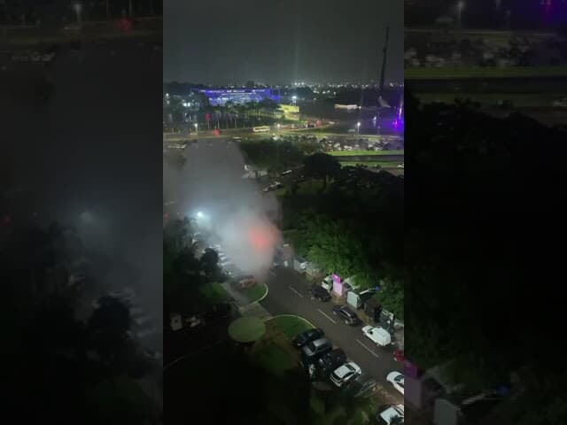 Vídeos nas redes sociais mostram um carro explodindo com fogos de artifício no estacionamento do anexo 4 da Câmara.
