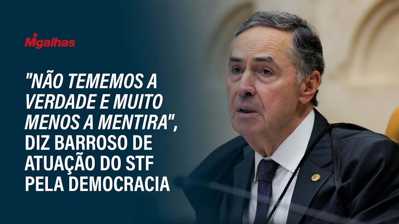 S. Exa. criticou a imposição de narrativas distorcidas e garantiu que o Supremo não se deixará intimidar, mantendo a defesa da ordem democrática. Barroso enfatizou que a instituição enfrentará tanto a verdade quanto a desinformação sem receios.
