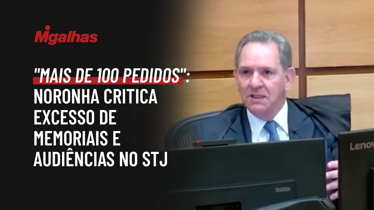 "Mais de 100 pedidos": Noronha critica excesso de memoriais e audiências no STJ