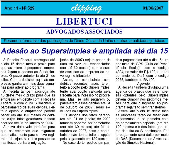 Clipping semanal elaborado pelo escritório Libertuci - Advogados Associados