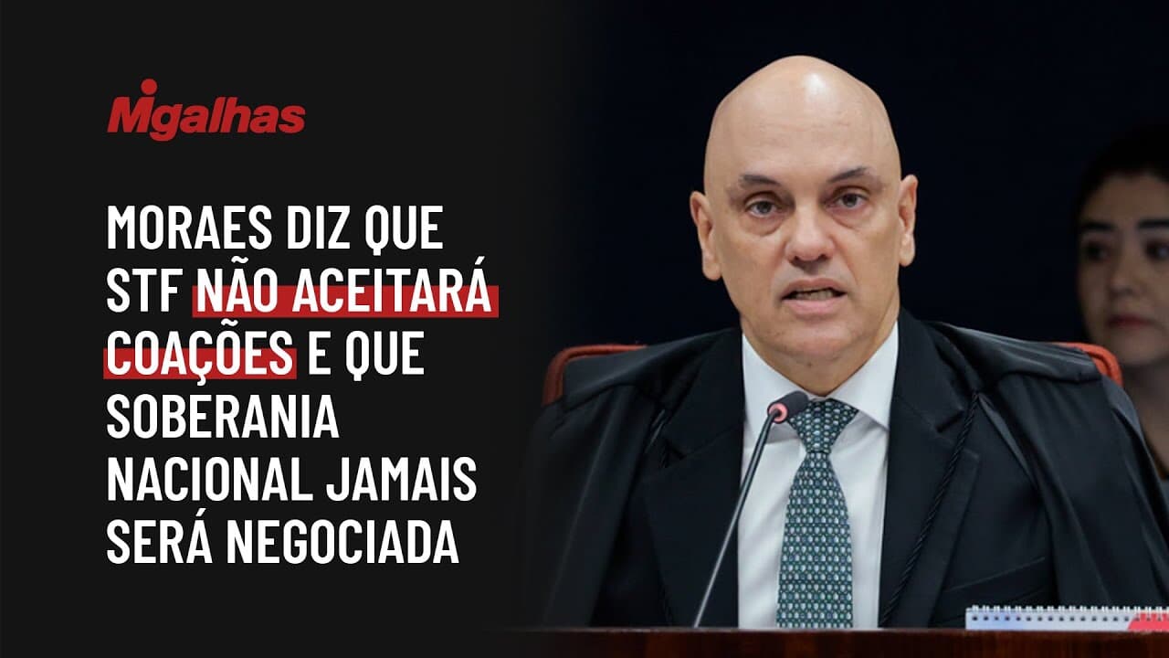 Ao final, Moraes também ressaltou a defesa intransigente da soberania nacional.
