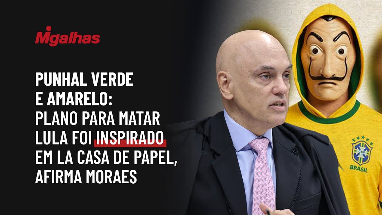 Ao votar na ação que julga Jair Bolsonaro e aliados por tentativa de golpe de Estado, o relator, ministro Alexandre de Moraes, destacou que o "Plano Punhal Verde-Amarelo", que previa o assassinato de diversas autoridades, incluindo o presidente Lula, fazia parte da operação batizada de Copa 2022 e foi inspirado na série espanhola "La Casa de Papel".